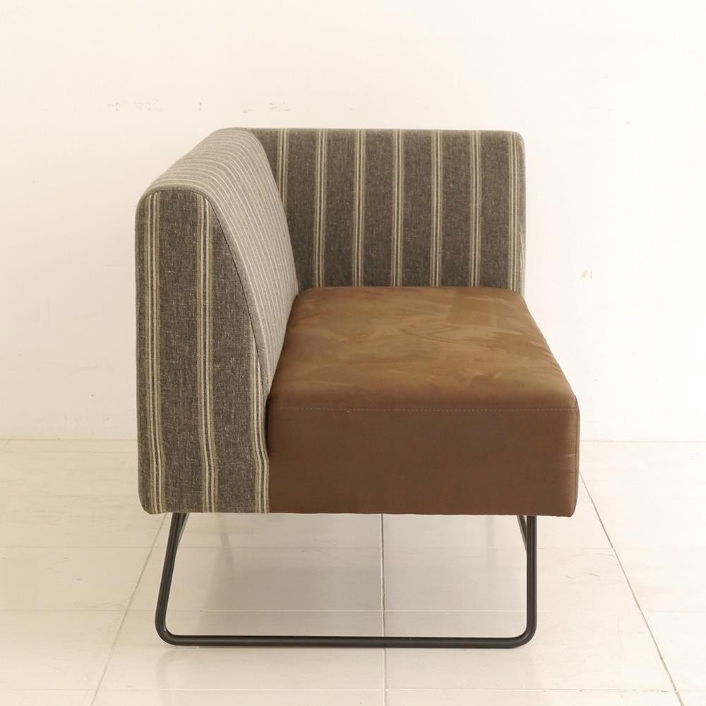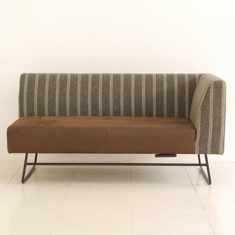 「背面のストライプ生地×座面の皮風生地」が、おしゃれながらも落ち着いた雰囲気のカウチソファー(左肘)です。