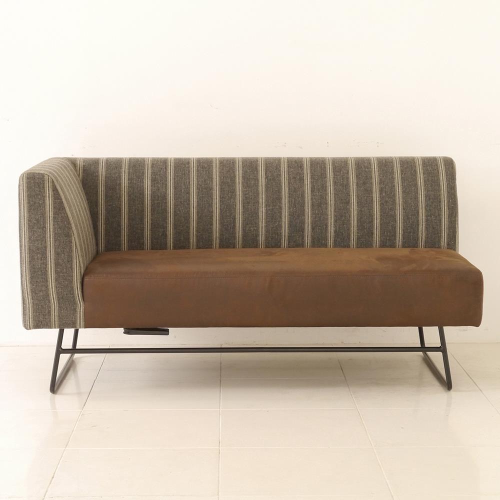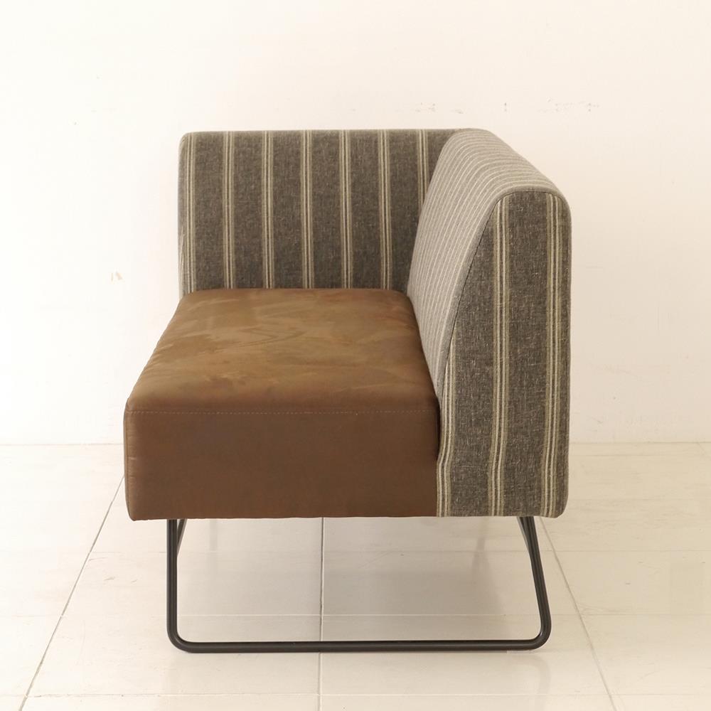 「背面のストライプ生地×座面の皮風生地」が、おしゃれながらも落ち着いた雰囲気のカウチソファー(右肘)です。