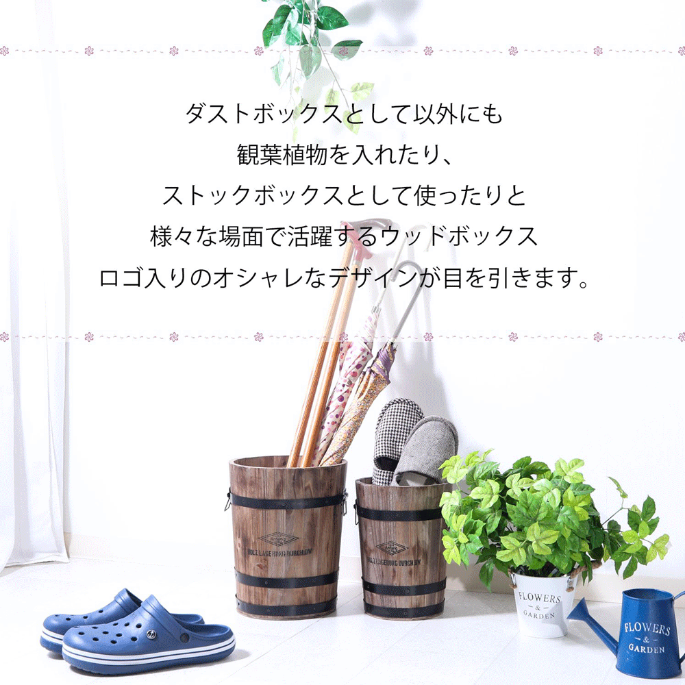 ダストボックス以外にも植物を入れたり、ストックボックスとして使ったりと様々な場面で活躍するウッドボックス。