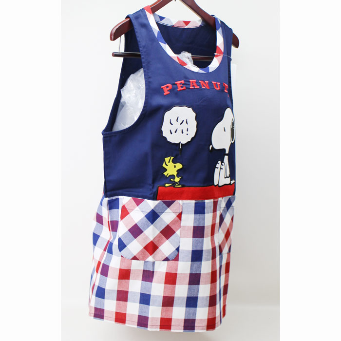 【メール便 送料無料】スヌーピー ラン型エプロン(ネービーチェック) 654566商品説明好評の大人婦人フリーサイズのエプロン。
